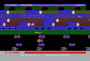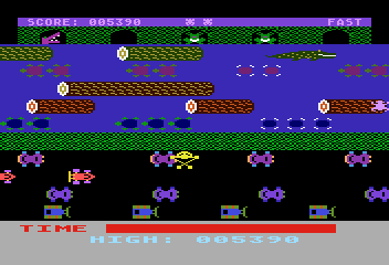 If any game was well suited for the Atari's display list, smooth scrolling, and horizontal interrupts, this was it! 35 colors on a single screen! Such a satisfying sound, too, when you...uh, plugged your frog into the hole.